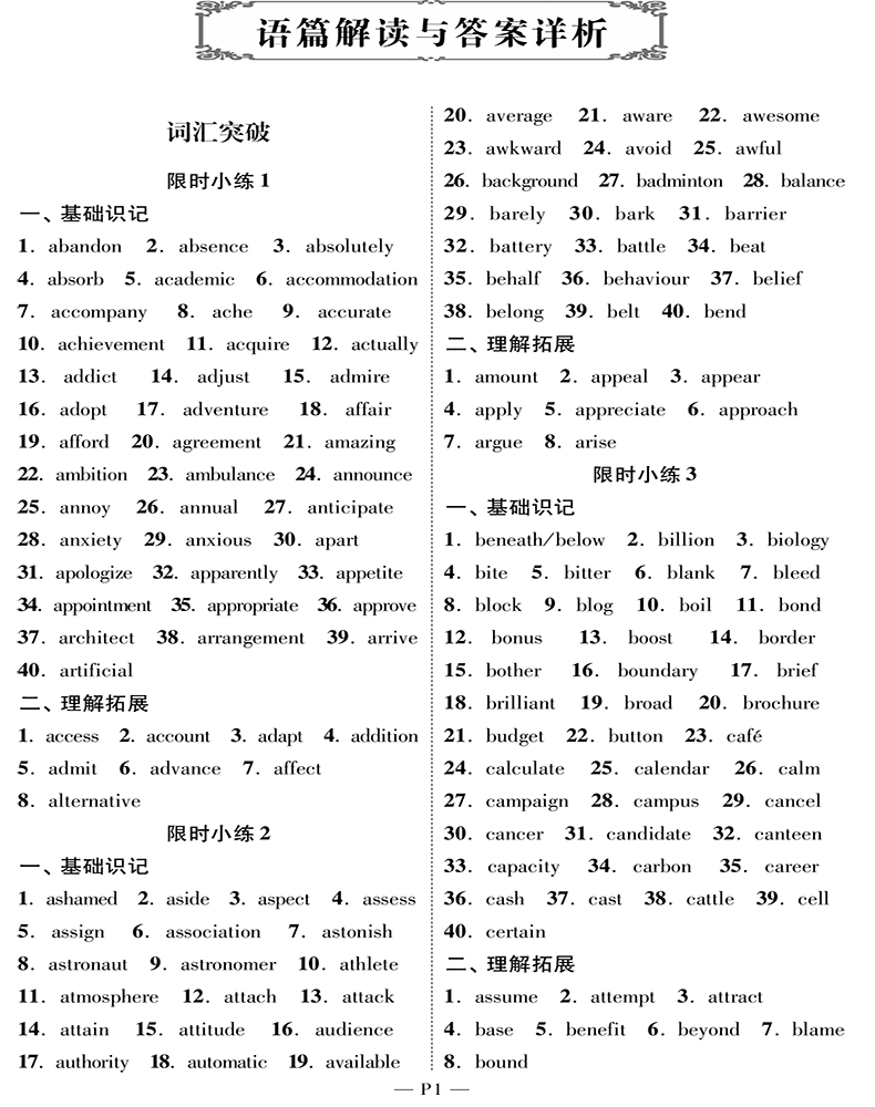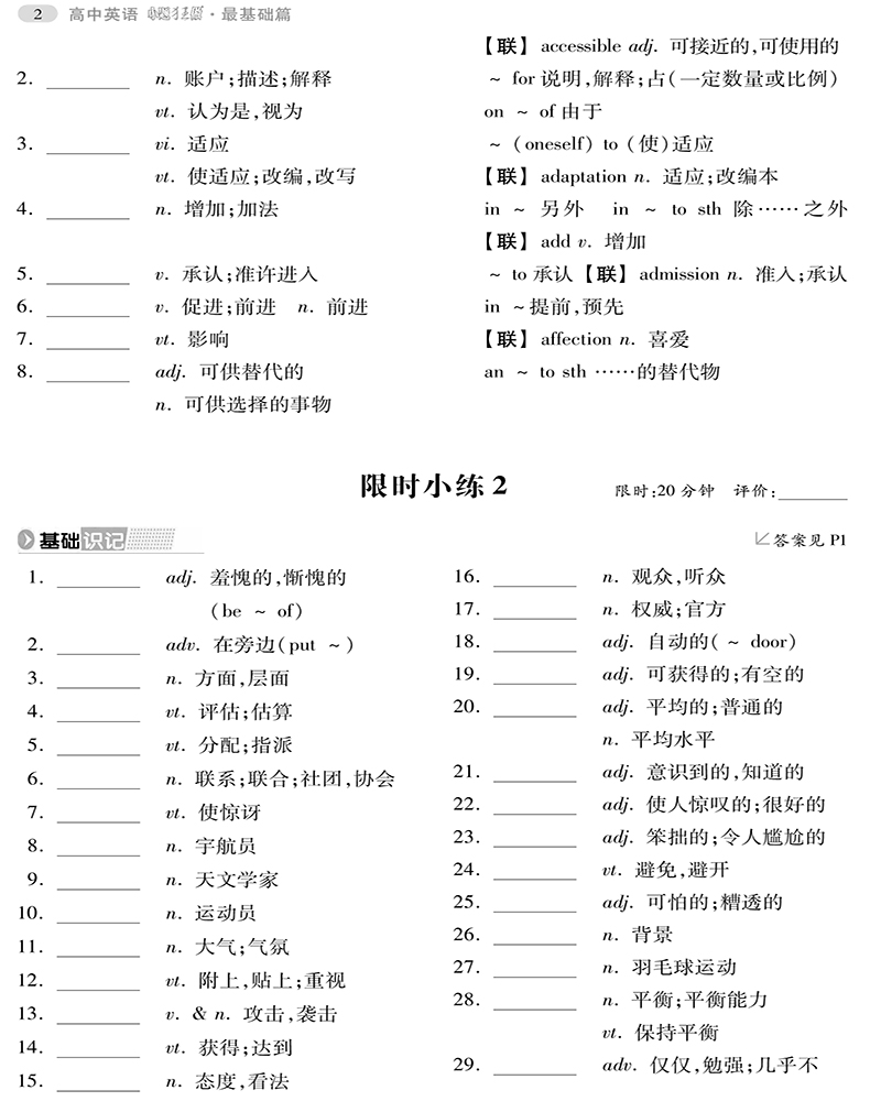 基础薄弱学生“0”轮复习或艺考生复习训练