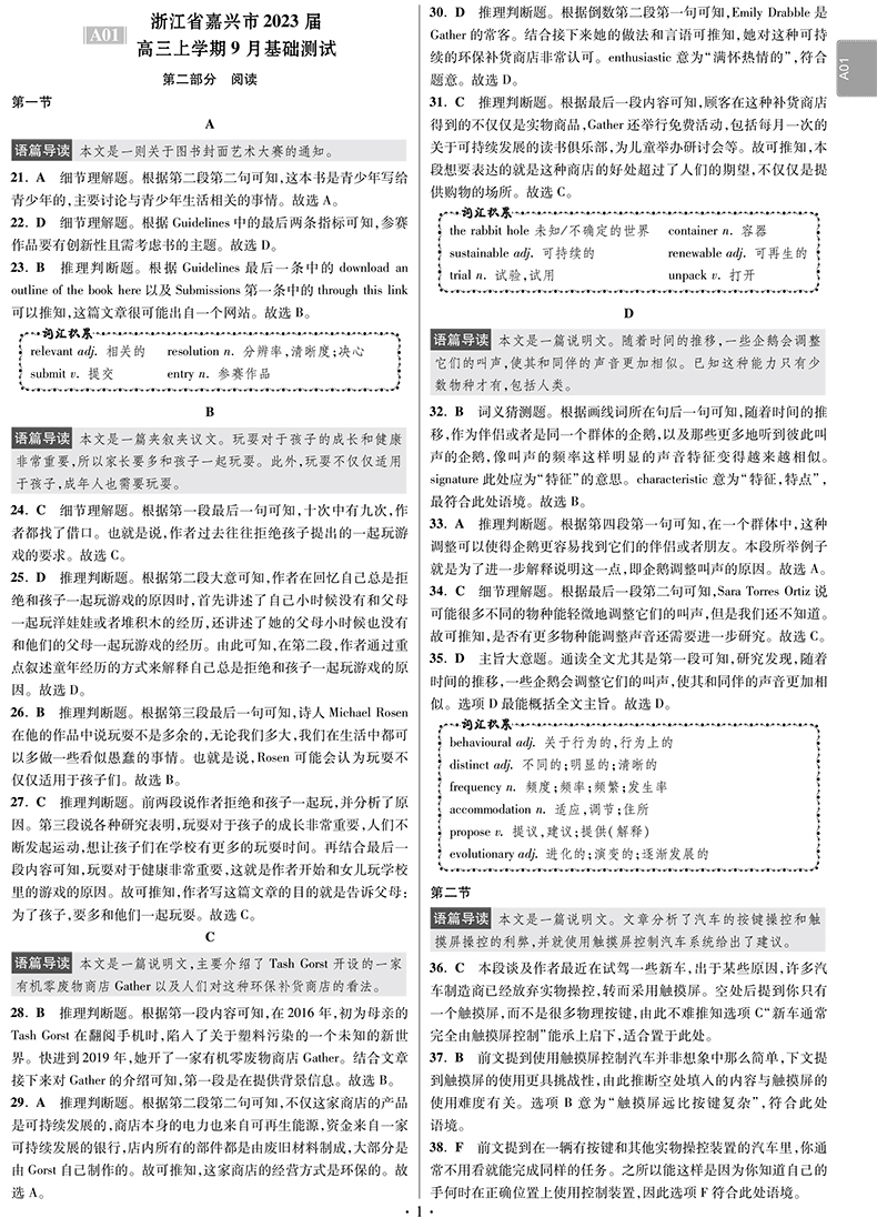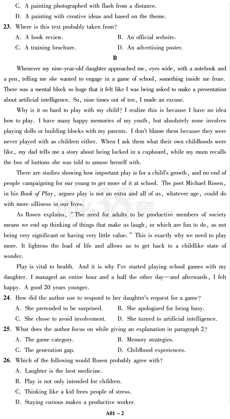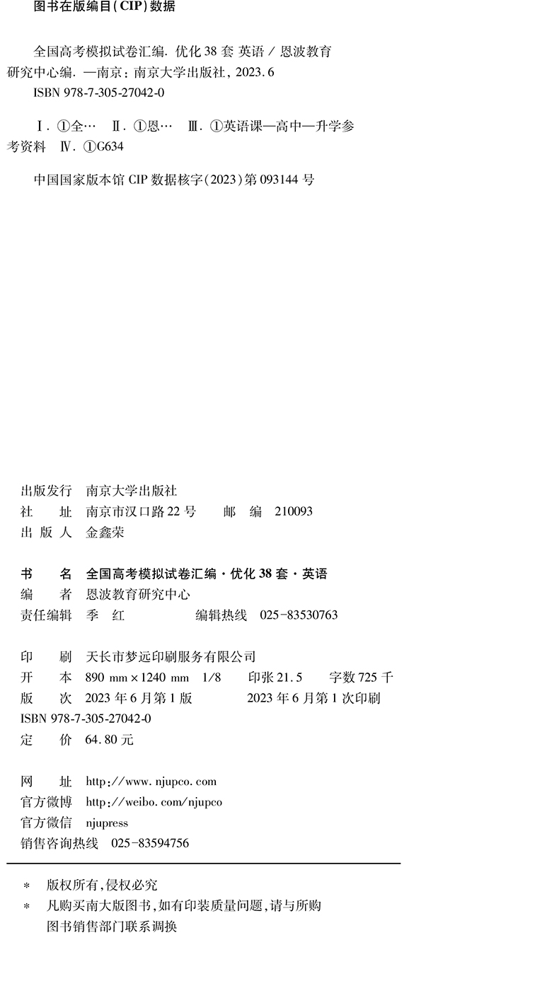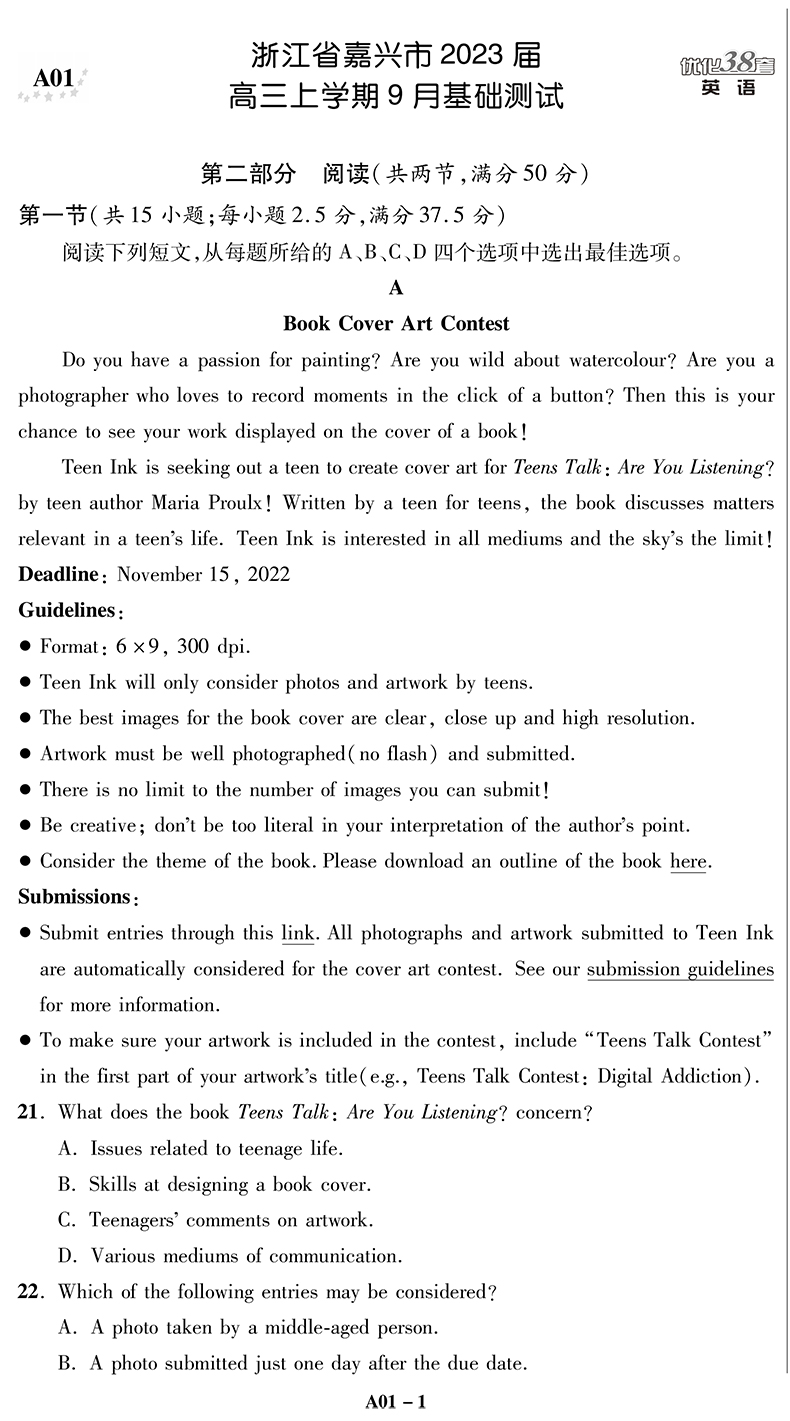 全国高考模拟试卷汇编·优化38套·英语
