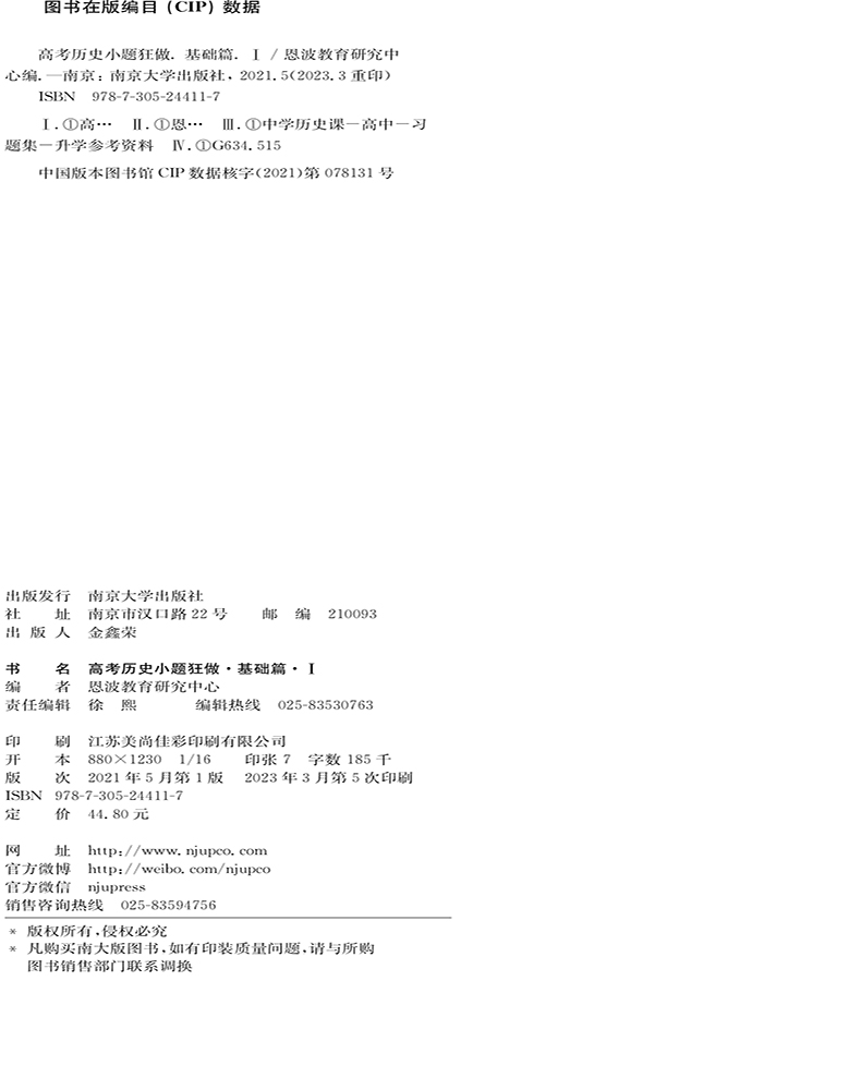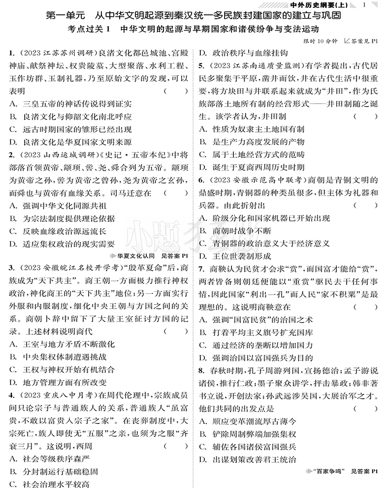 高考历史小题狂做·基础篇·I(新教材老高考版)