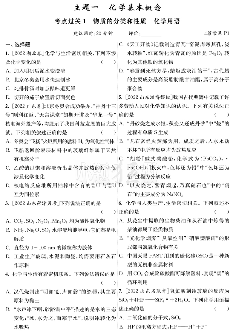 高考化学小题狂做·基础篇·Ⅰ(山东版)