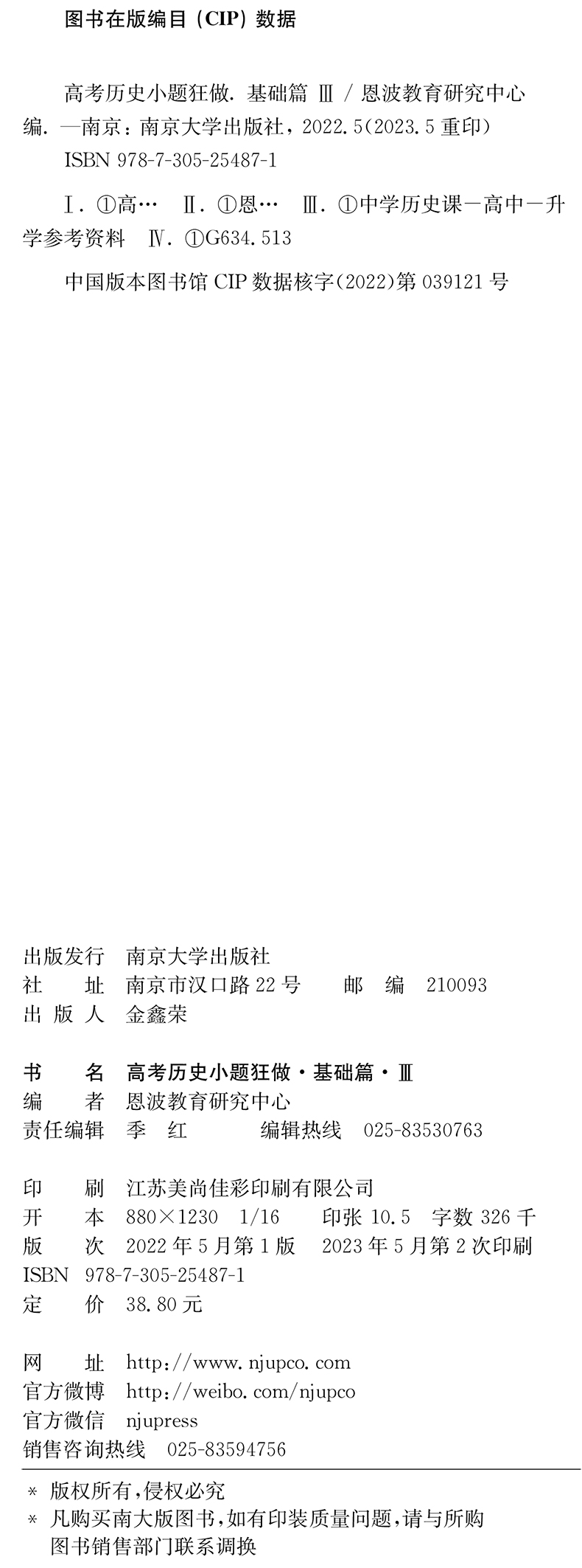 高考历史小题狂做·基础篇·Ⅲ(山东版)