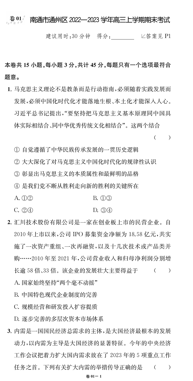 高考政治·小卷实战