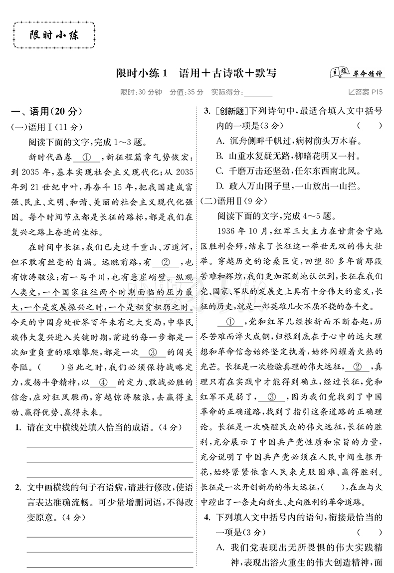 小题狂做·全程测评卷·三年级语文·下册·全国版