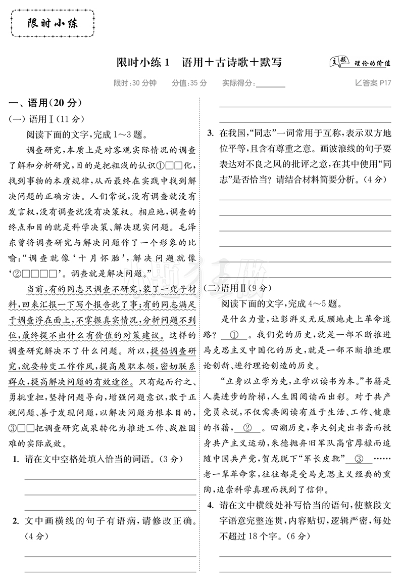 小题狂做·全程测评卷·三年级语文·下册·全国版