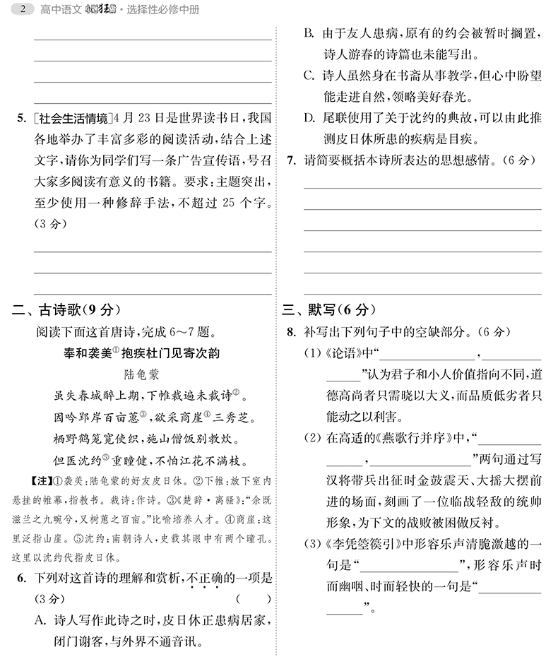 小题狂做·全程测评卷·二年级语文·下册·全国版