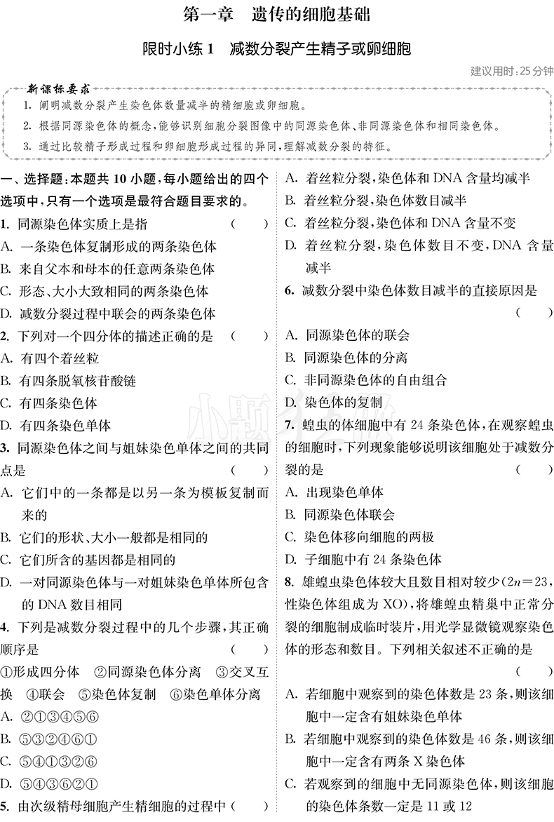 高中生物小题狂做·选择性必修1·RJ·稳态与调节