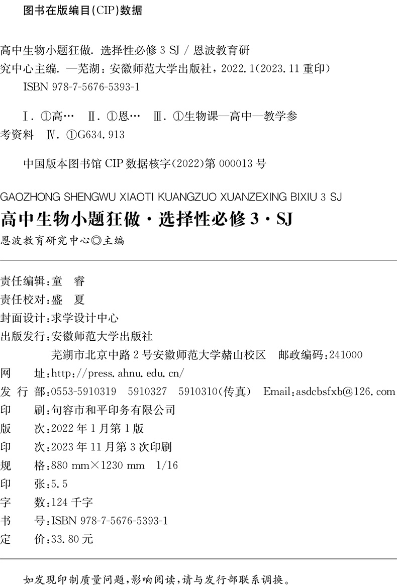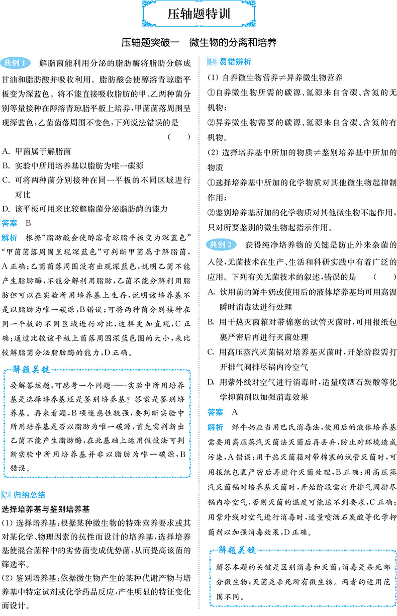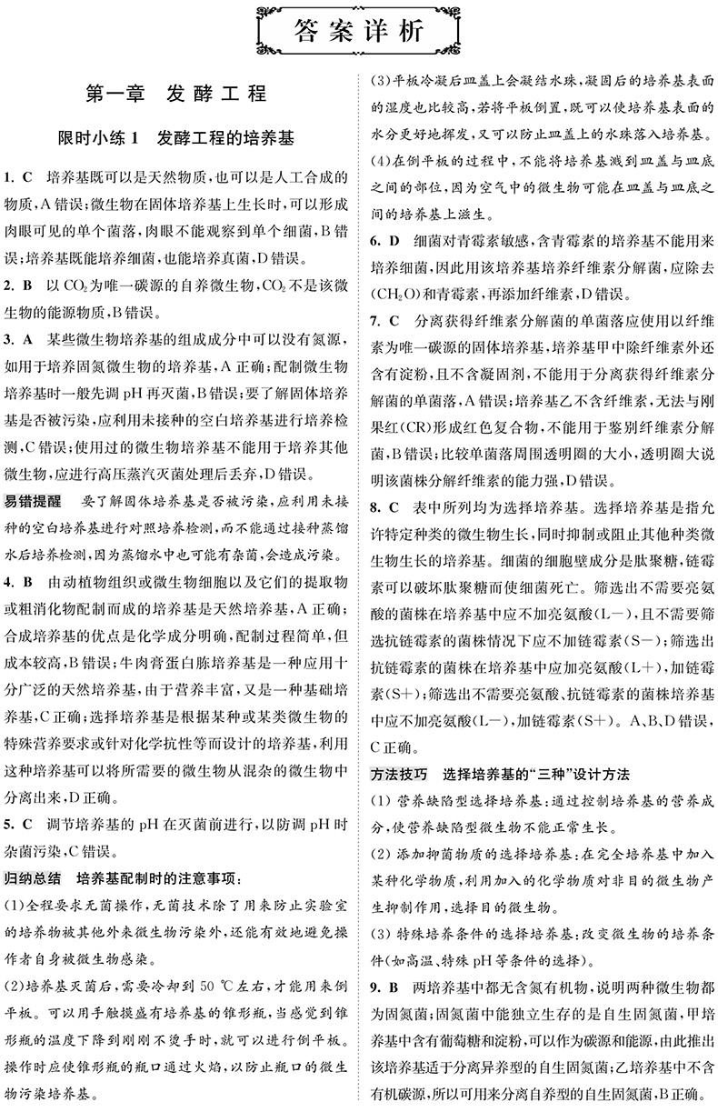 高中生物小题狂做·选择性必修3·SJ·生物技术与工程