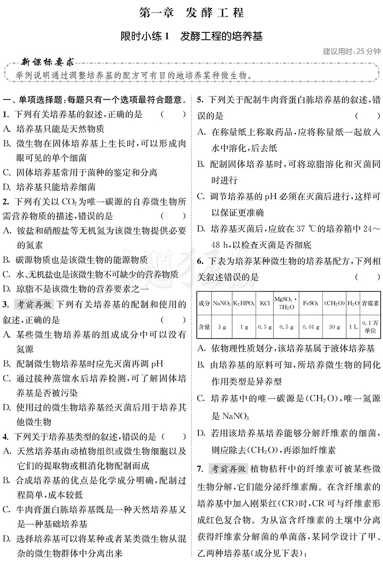 高中生物小题狂做·选择性必修3·RJ·生物技术与工程