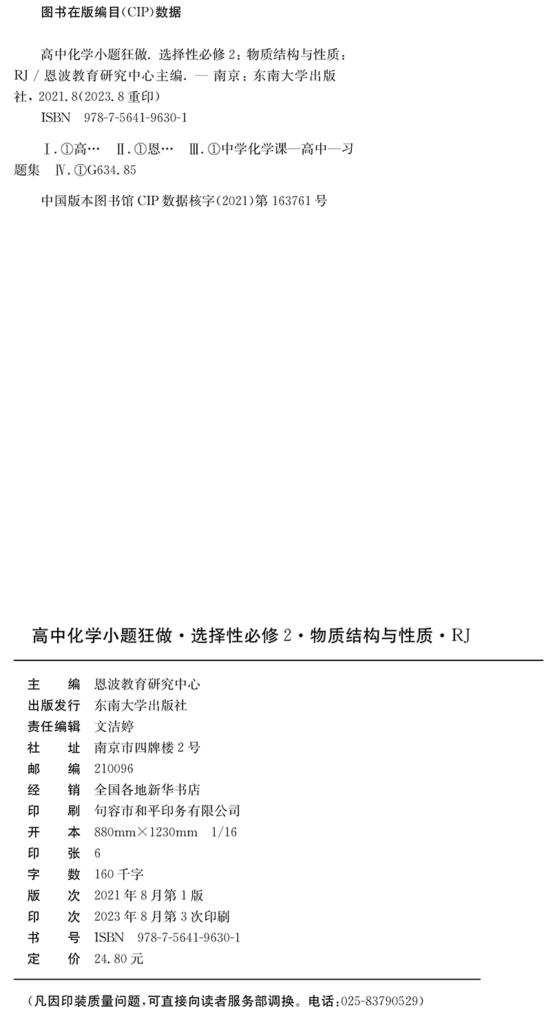 高中化学小题狂做·选择性必修2·物质结构与性质·SJ