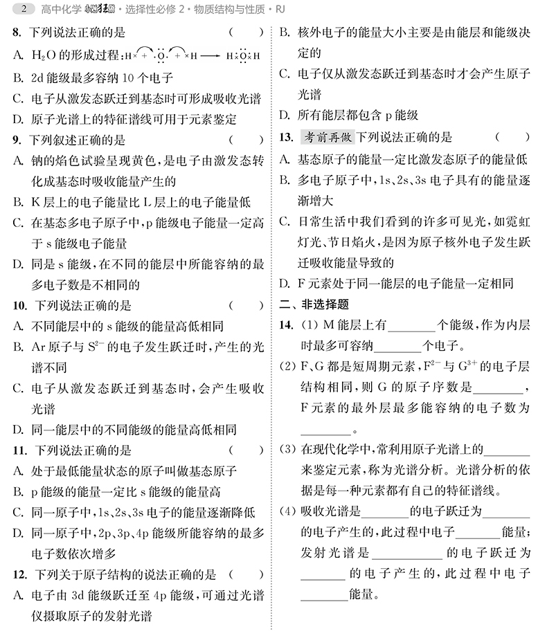高中化学小题狂做·选择性必修2·物质结构与性质·RJ