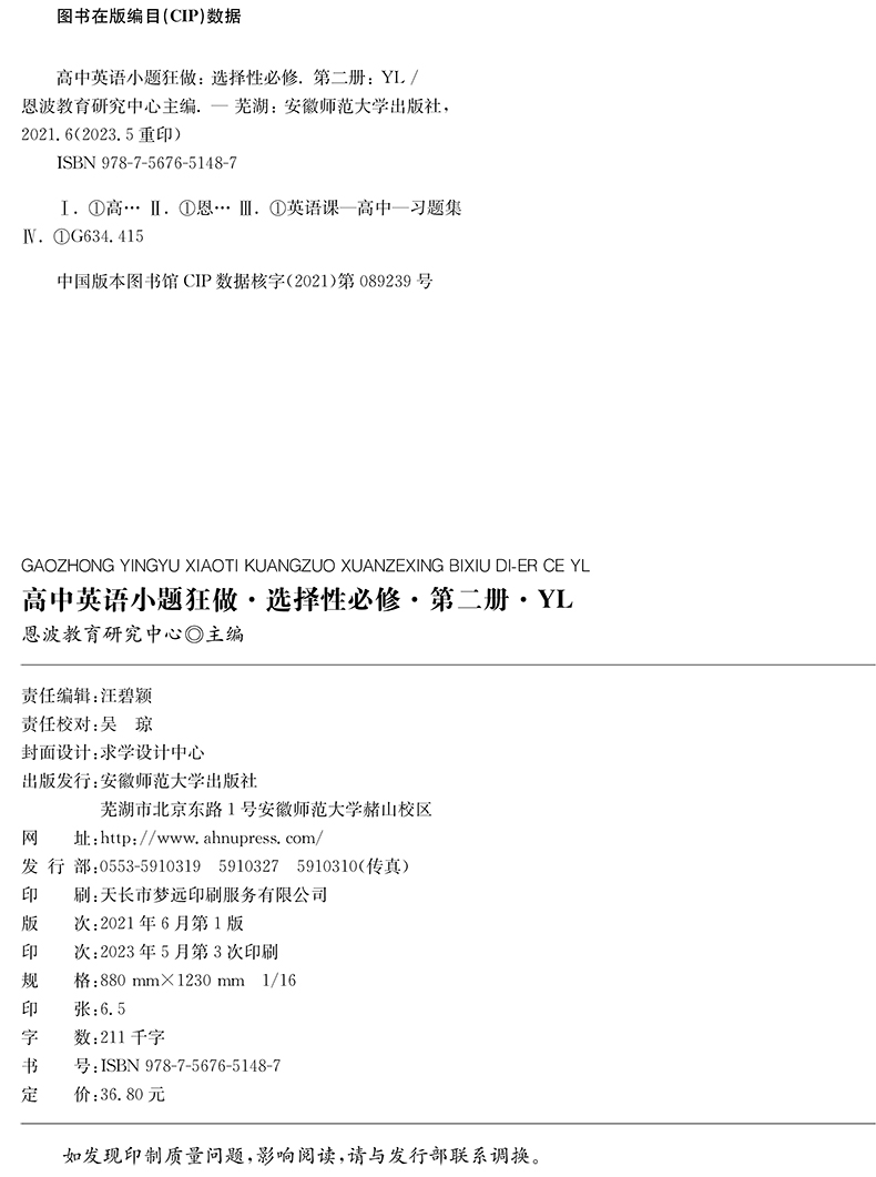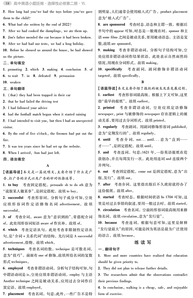高中英语小题狂做·选择性必修第二册·YL