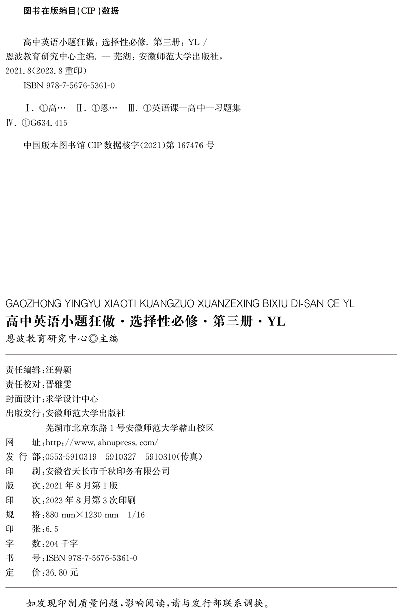 高中英语小题狂做·选择性必修第三册·YL