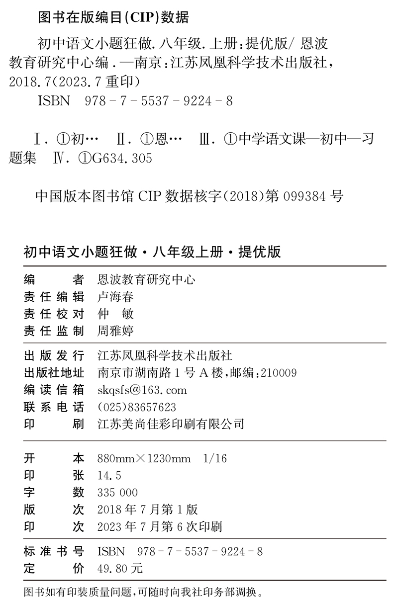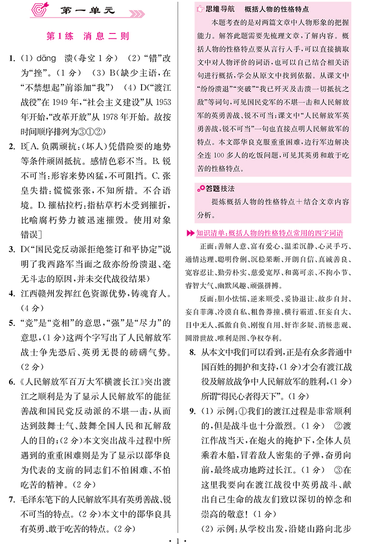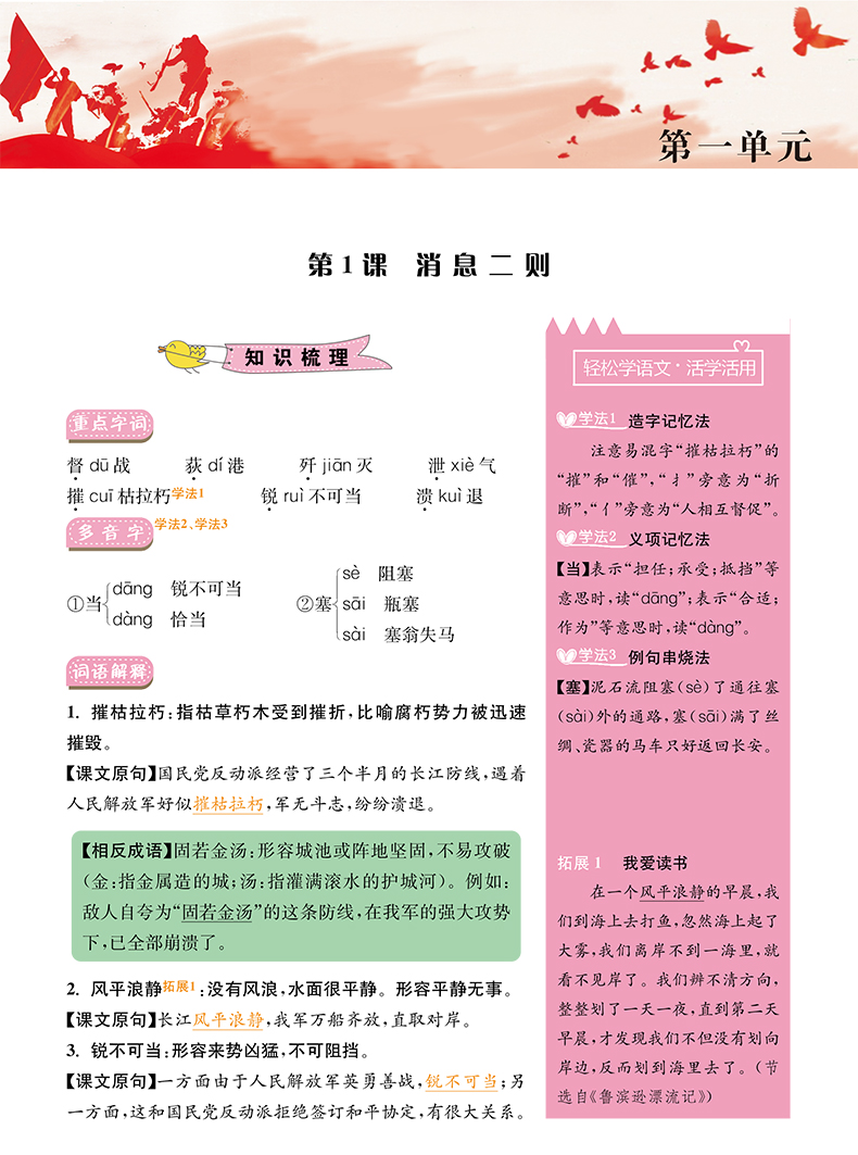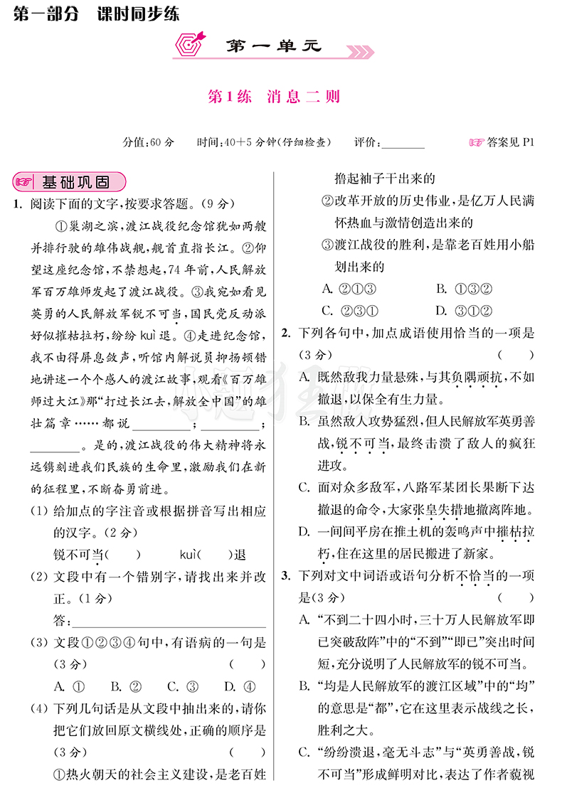 课时同步练 阶段自主测 期末加油站 答案全解析