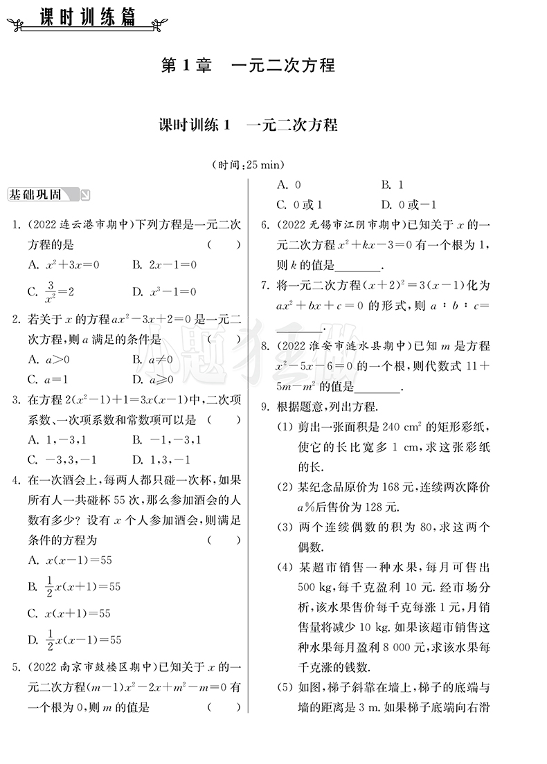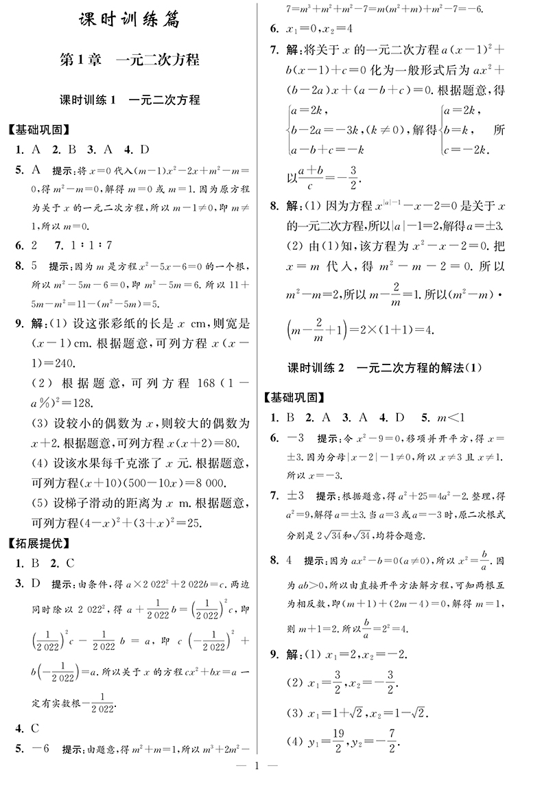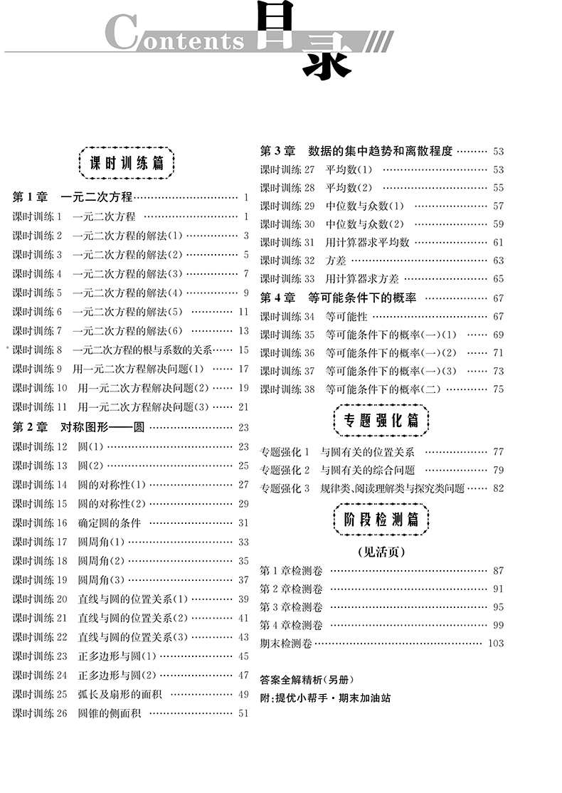 课时同步练 阶段自主测 期末加油站 答案全解析