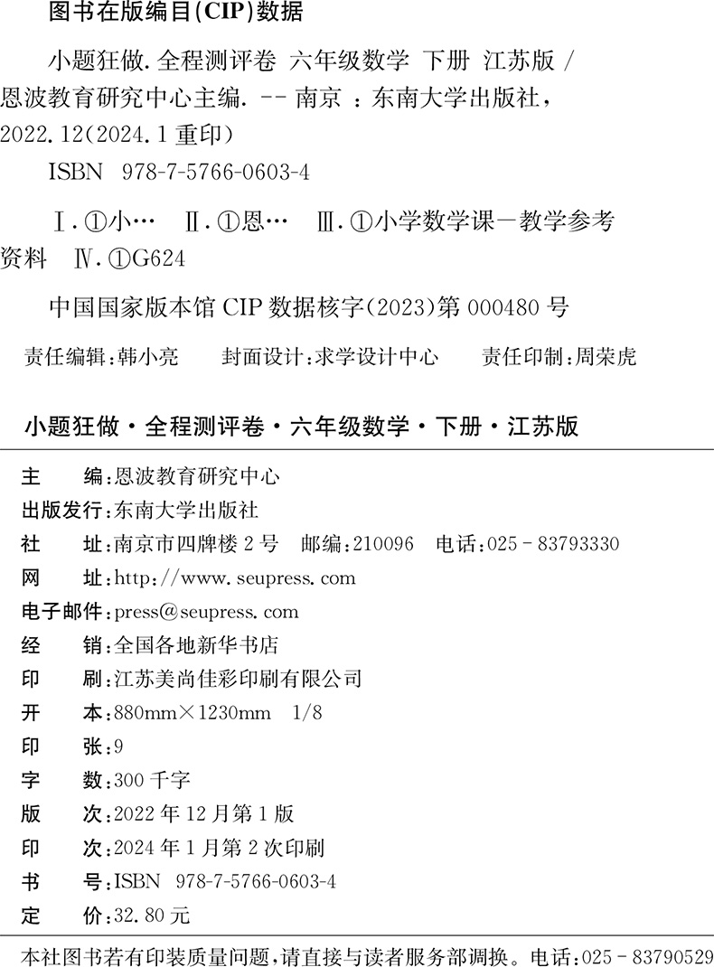 小题狂做·全程测评卷·六年级数学·下册·江苏版